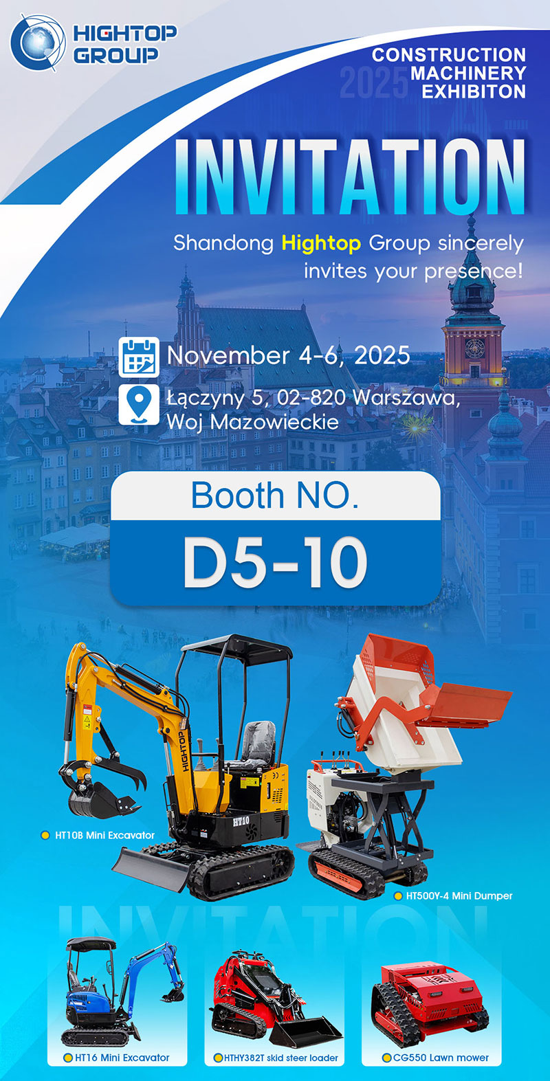 为深化欧洲市场战略布局,山东海拓集团将于2025年11月4日至6日重磅亮相波兰华沙国际工程机械展(展位号:D5-10)。本次参展,海拓将携多款针对欧洲工况量身打造的明星产品,与当地客户及合作伙伴对接,共同探索施工新范式。