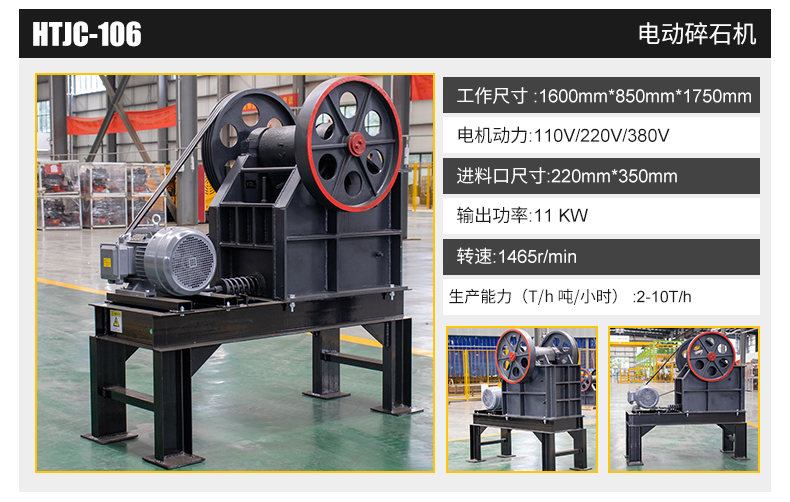 破碎机是利用两颚板对物料的挤压和弯曲作用 ,粗碎或中碎各种硬度物料的破碎机械。 其破碎机构由固定颚板和可动颚板组成,当两颚板靠近时物料即被破碎,当两颚板离开时小于排料口的料块由底部排出。它的破碎动作是间歇进行的。这种破碎机因有结构简单、工作可靠和能破碎坚硬物料等优点而被广泛应用于选矿、建筑装修材料和陶瓷等工业。