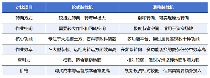 尽管都名为“装载机”,但轮式装载机与滑移装载机在设计和定位上有着根本性的不同。