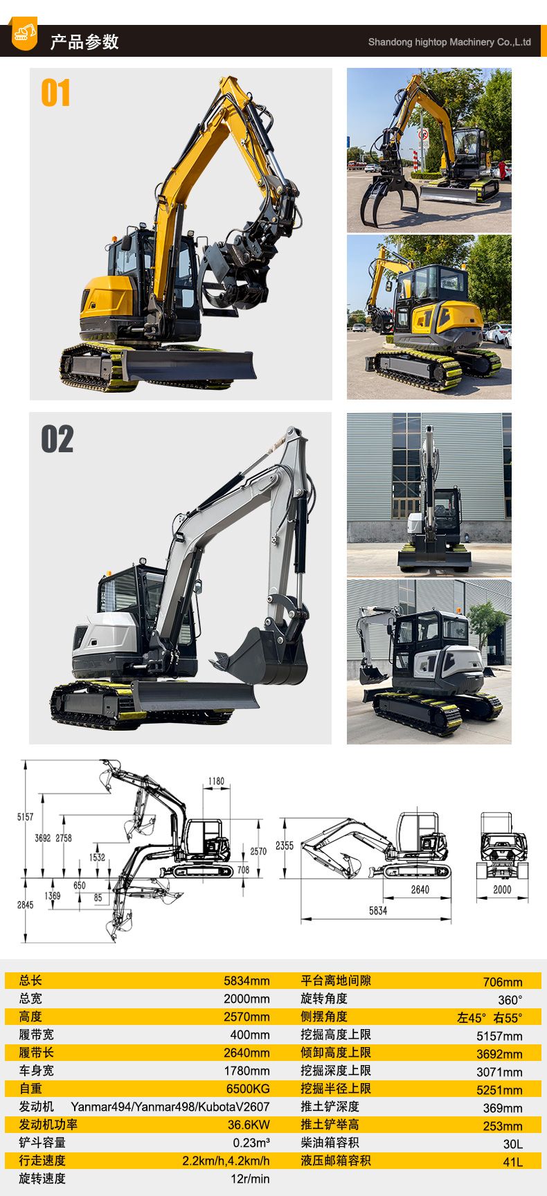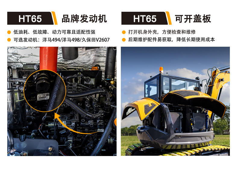 4. 动力可靠且适配性强:搭载洋马发动机,作为行业内成熟稳定的动力机型,不仅输出动力匹配6.5吨机身自重,还具备低油耗、低故障的特点,后期维护配件易获取,降低长期使用成本。