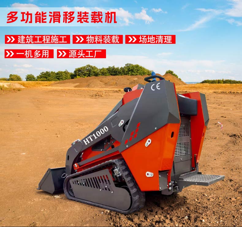 HT1000滑移装载机以硬核参数打造高效作业体验,搭载0.14m³容积铲斗,配合1100kg的强劲倾翻能力与475kg装载重量,轻松应对中小型装载、转运需求。其铲斗最大举升高度达2719mm,最大卸料高度1610mm、卸料距离605mm,45°的最大卸料角度确保物料排空彻底无残留,无论是工地砂石转运还是厂房物料整理,都能实现“举得高、卸得净、效率高”的作业效果。