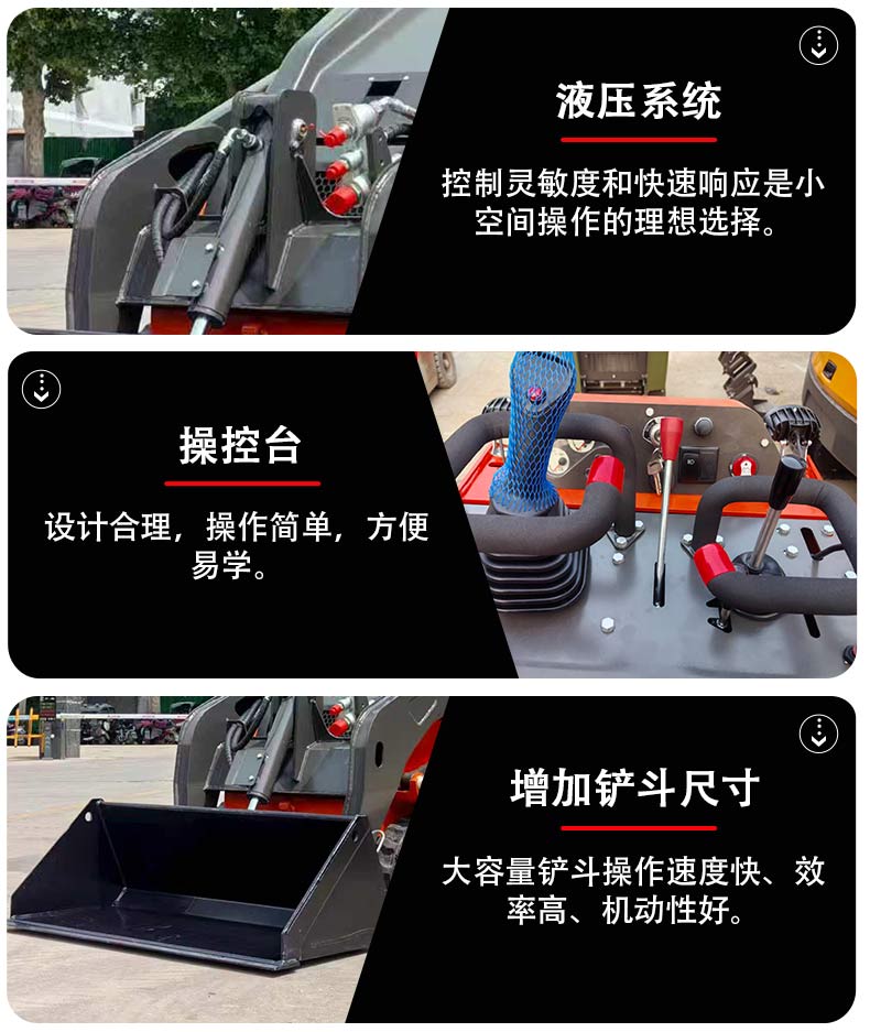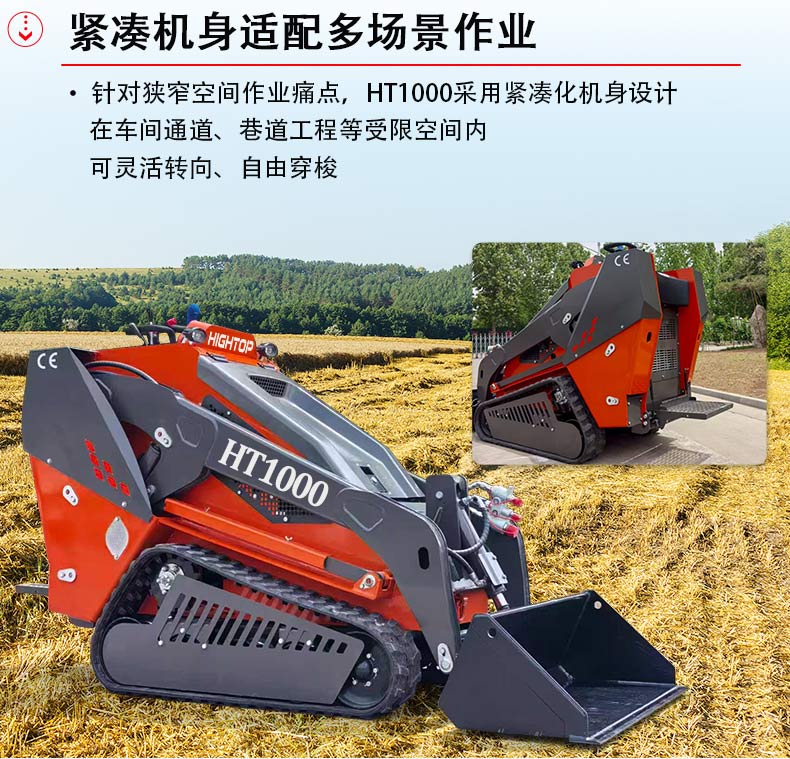 以操作员体验为核心,HT1000打造人性化操作空间。228mm的脚踏板到地面距离,配合科学的座舱布局,方便操作员上下机与脚部施力;铲斗高位81°的转动角与灵活的操控系统,让物料装卸、转向调整等动作精准省力。整机高度控制在1670mm,既保证了操作视野开阔,又便于通过低矮厂房、仓库的门洞,大幅提升作业舒适性与便捷性。