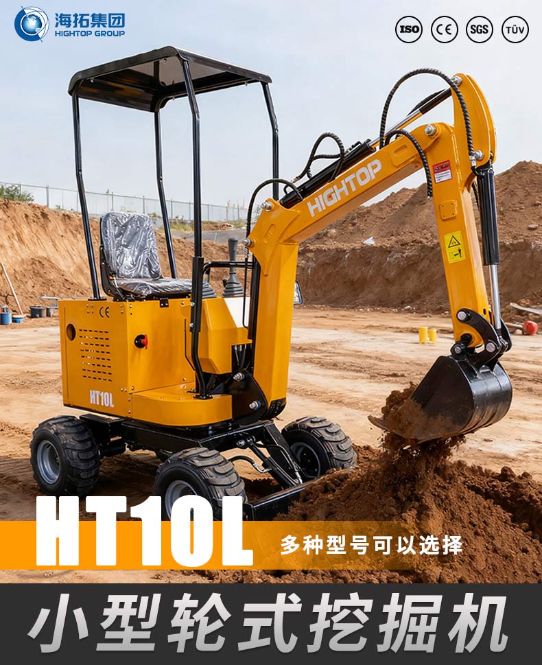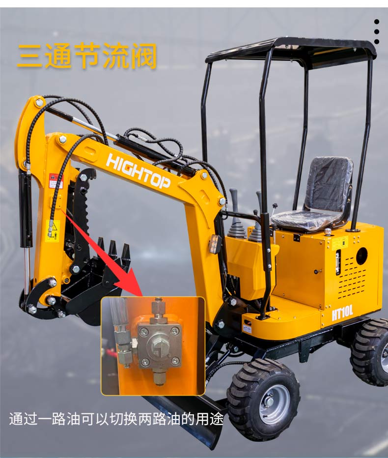HT-10L轮式挖掘机是以轮胎为行走部件的土方机械,采用液压挖掘,液压行走原理,主要用于市政维护、小型路面建设等小型工程施工。具备自行走转场快和快速更换作业装置的特点,液压系统通过主泵驱动多路阀控制执行元件,行走采用液压马达直连传动。